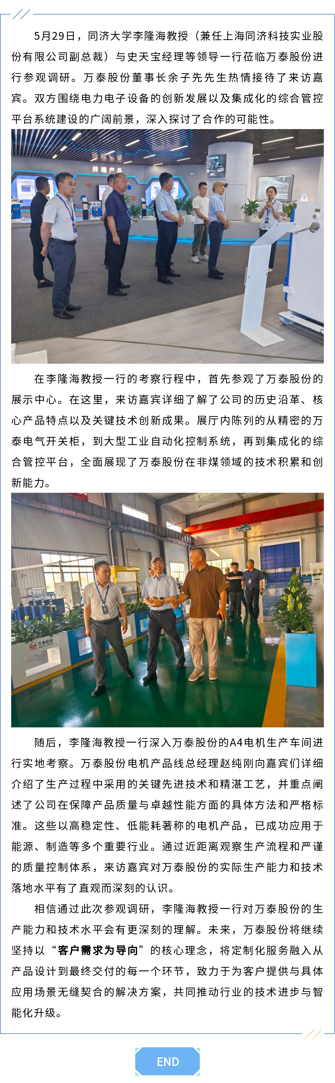 熱烈歡迎|同濟大學李隆海教授(兼任上海同濟科技實業(yè)股份有限公司副總裁)與史天寶經(jīng)理等領(lǐng)導(dǎo)一行蒞臨萬泰參觀調(diào)研