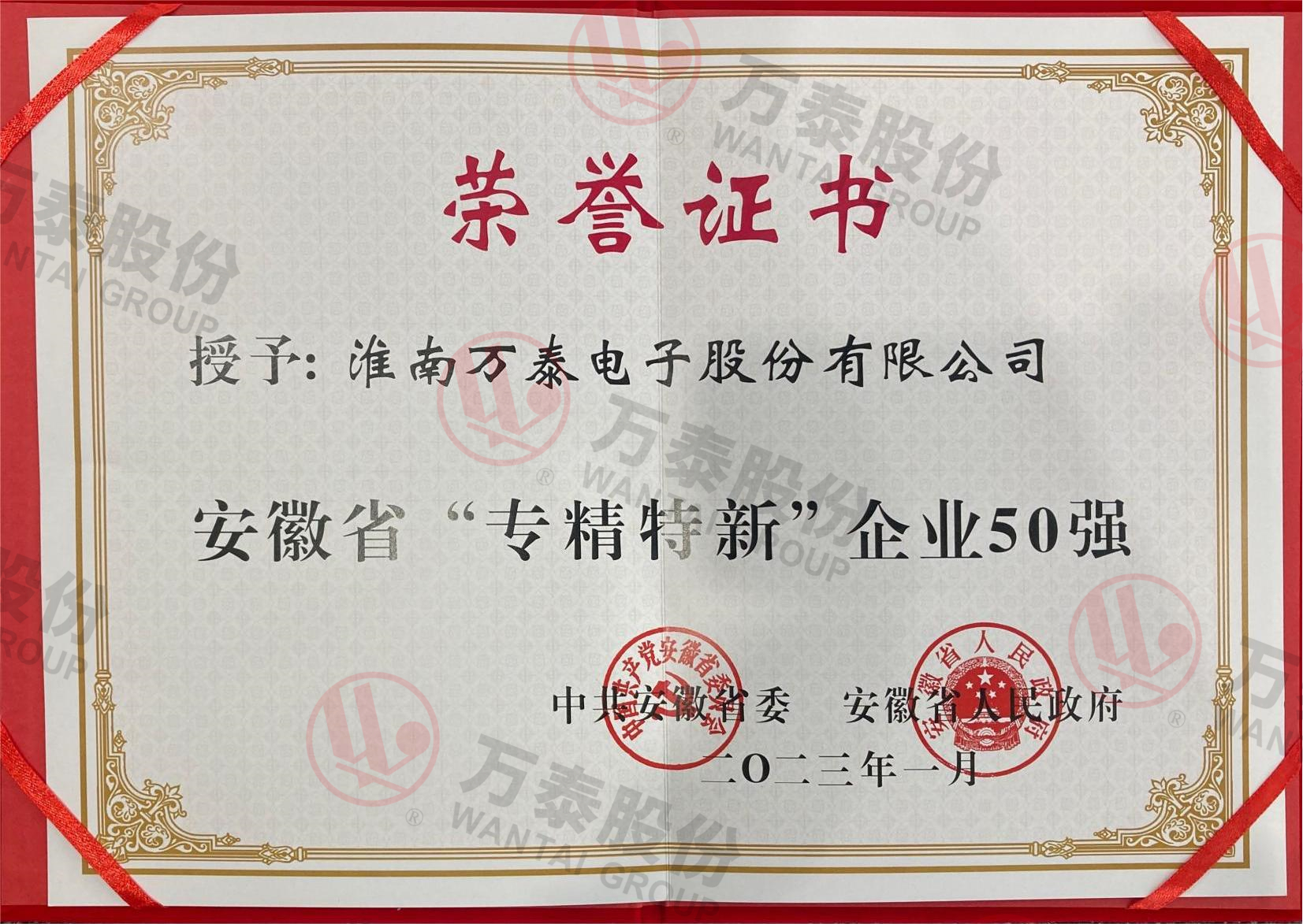 • 安徽省“專精特新”企業(yè)50強(qiáng)