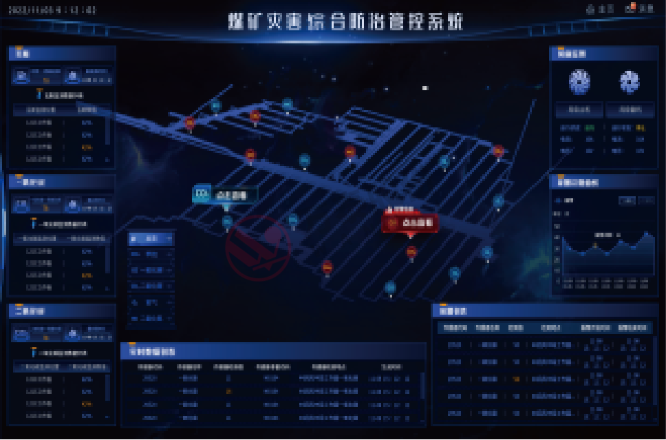 災(zāi)害綜合防治系統(tǒng)是通過對井下瓦斯、水害、火災(zāi)、粉塵、頂板、地壓等災(zāi)害監(jiān)測系統(tǒng)集成,綜合運用人工智能、大數(shù)據(jù)、物聯(lián)網(wǎng)、云計算、移動互聯(lián)、機器學(xué)習(xí)、三維仿真建模等技術(shù)手段,緊緊圍繞著煤礦安全管理,融合礦井“人、機、環(huán)、管”多系統(tǒng)、跨業(yè)務(wù)監(jiān)測監(jiān)控數(shù)據(jù),基于多源異構(gòu)數(shù)據(jù)統(tǒng)一集成規(guī)范、多系統(tǒng)融合聯(lián)動技術(shù)、災(zāi)害成因機理和大數(shù)據(jù)分析技術(shù),構(gòu)建智能災(zāi)害綜合防治系統(tǒng),實現(xiàn)煤礦瓦斯、水、火、頂板、粉塵等災(zāi)害信息的監(jiān)測預(yù)警和災(zāi)害模擬仿真,為災(zāi)害超前治理和源頭管控提供依據(jù),提升礦井災(zāi)害防治水平,實現(xiàn)礦井災(zāi)害智能化防控。