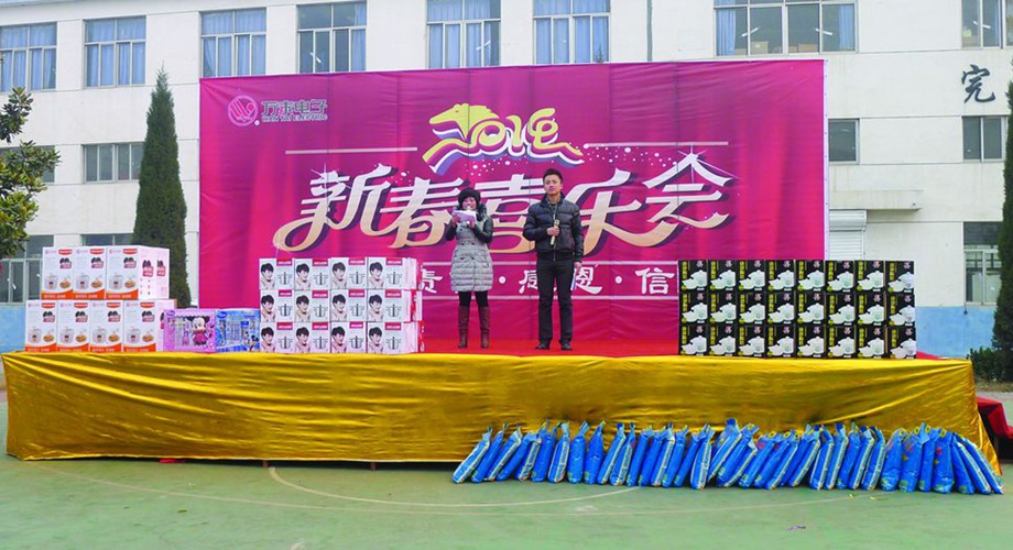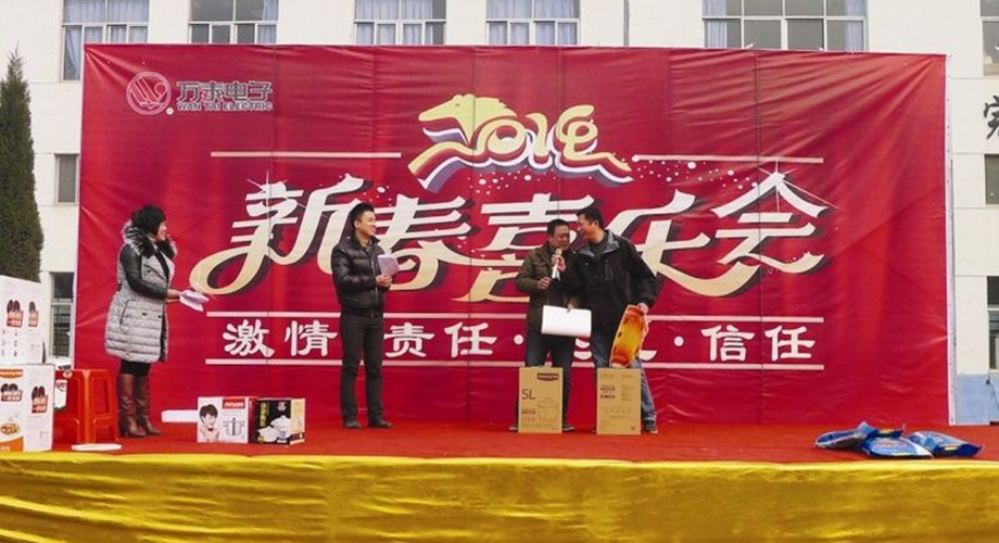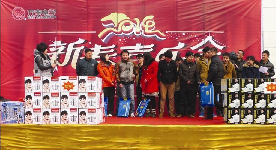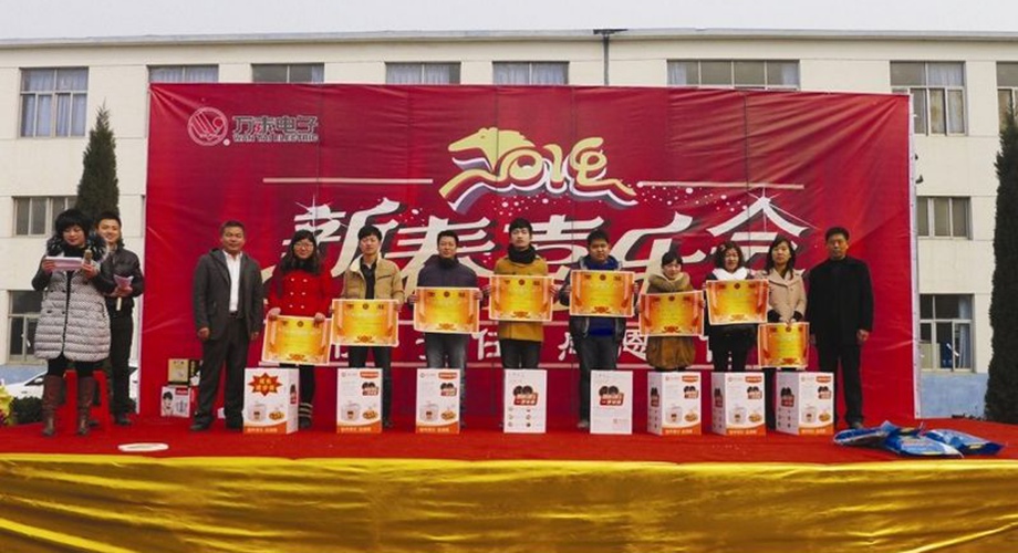 歲月如梭,萬泰電子又度過了蓬勃發(fā)展的一年,喜悅伴著汗水,成功伴著艱辛,告別激情的2013,迎接嶄新的2014?;茨先f泰電子股份有限公司召開了以“激情、責任、感恩、信任”為主題的2014新春喜樂會。年會于1月28日上午在萬泰電子隆重舉行。激情的體操秀拉開了2014年會的序幕。以董事長為首的公司高層領(lǐng)導(dǎo)紛紛上臺向大家致以節(jié)日的祝賀。