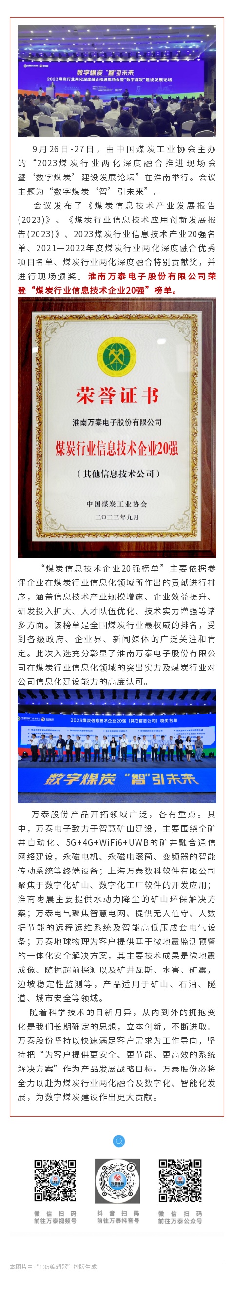 喜報(bào)!萬泰股份榮登“煤炭行業(yè)信息技術(shù)企業(yè)20強(qiáng)”榜單