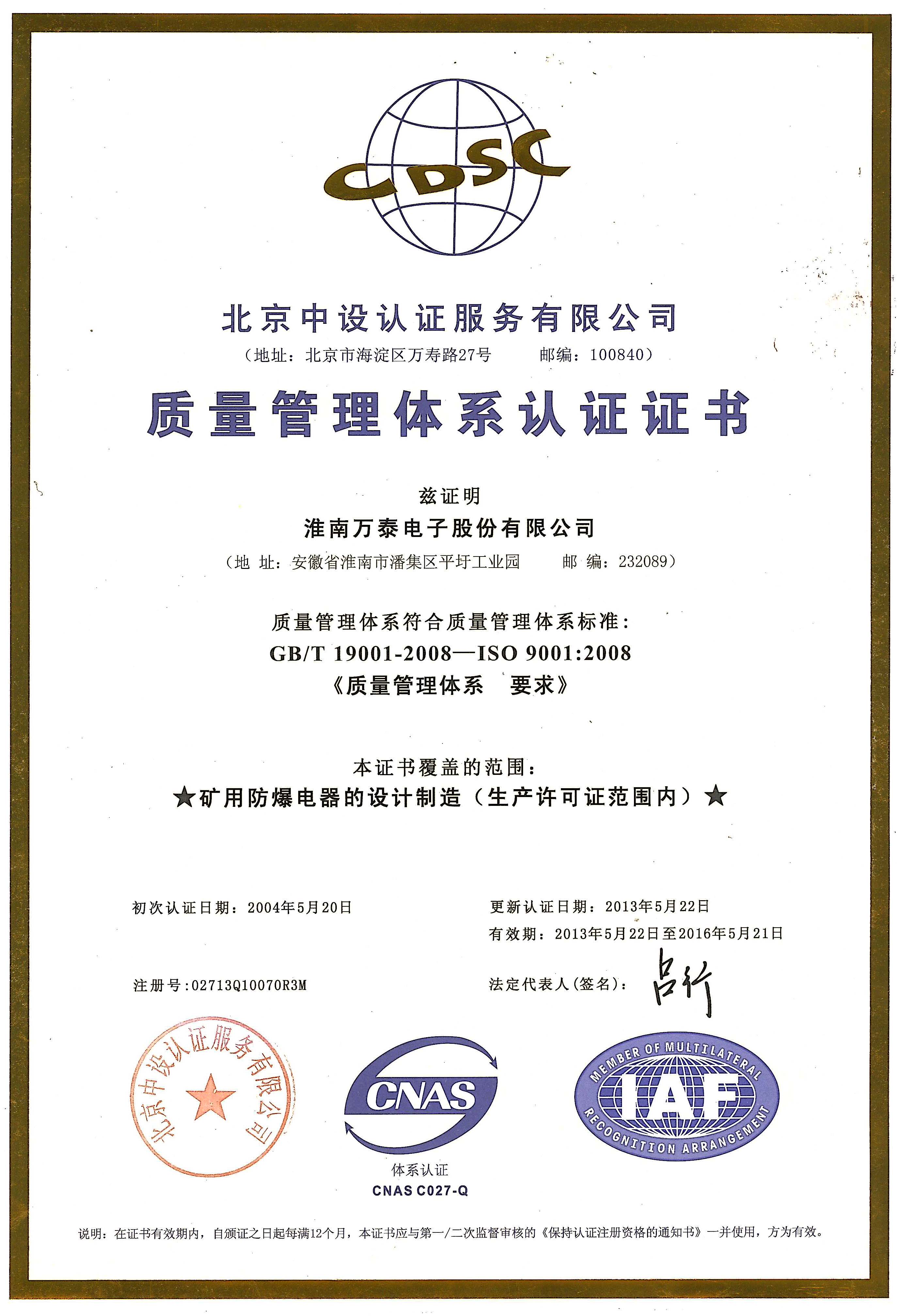 • ISO9001-2008質(zhì)量體系認(rèn)證證書