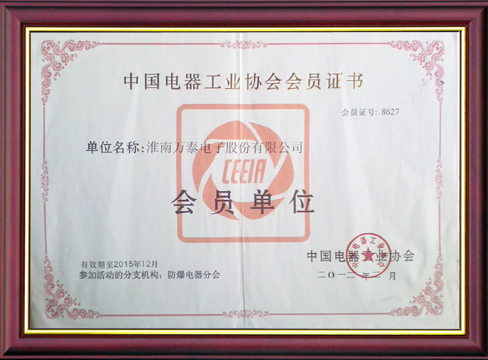 • 2012年2月中國電器工業(yè)協(xié)會會員證書