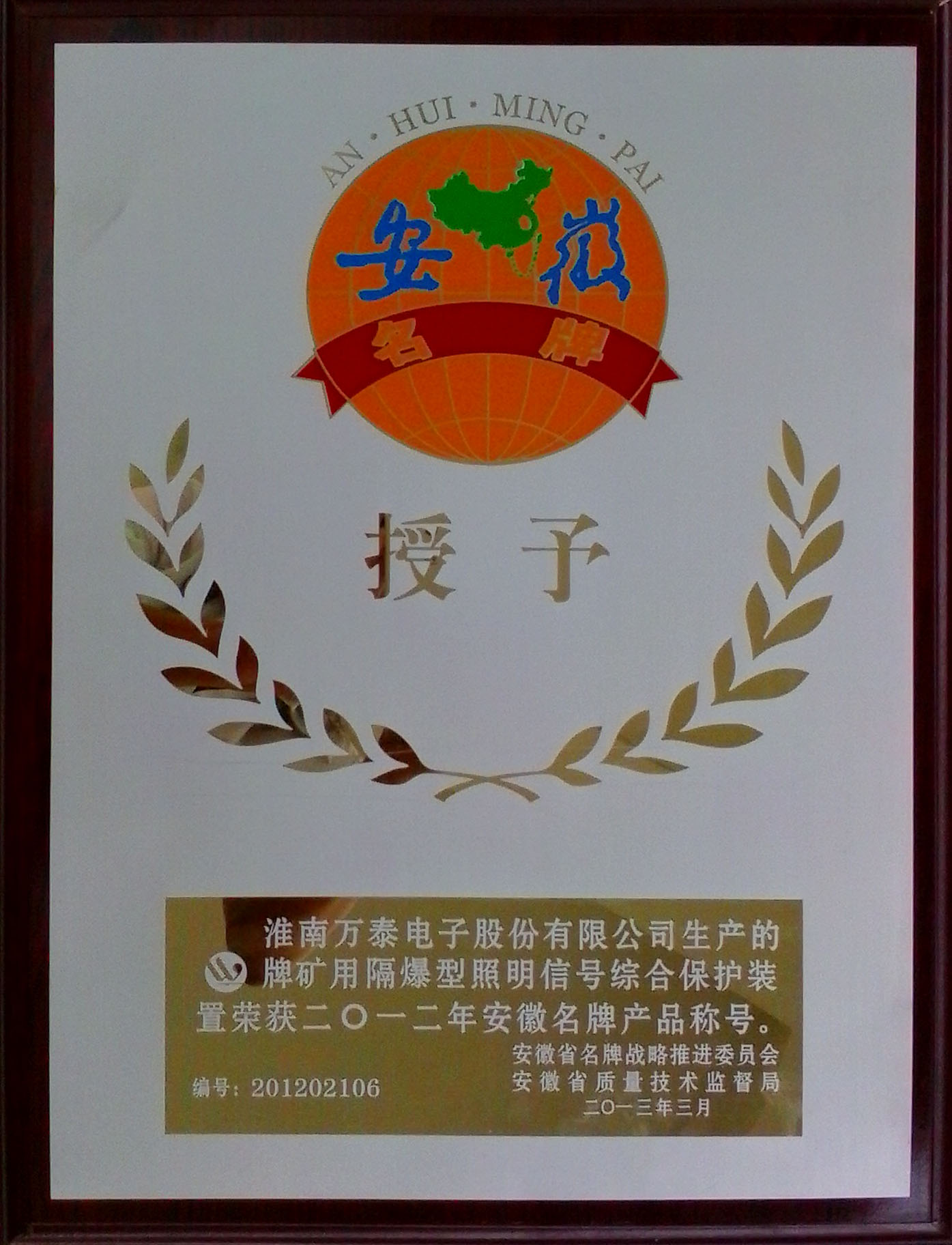 • 2013年3月安徽省名牌產(chǎn)品——礦用隔爆型照明信號綜合保護(hù)裝置