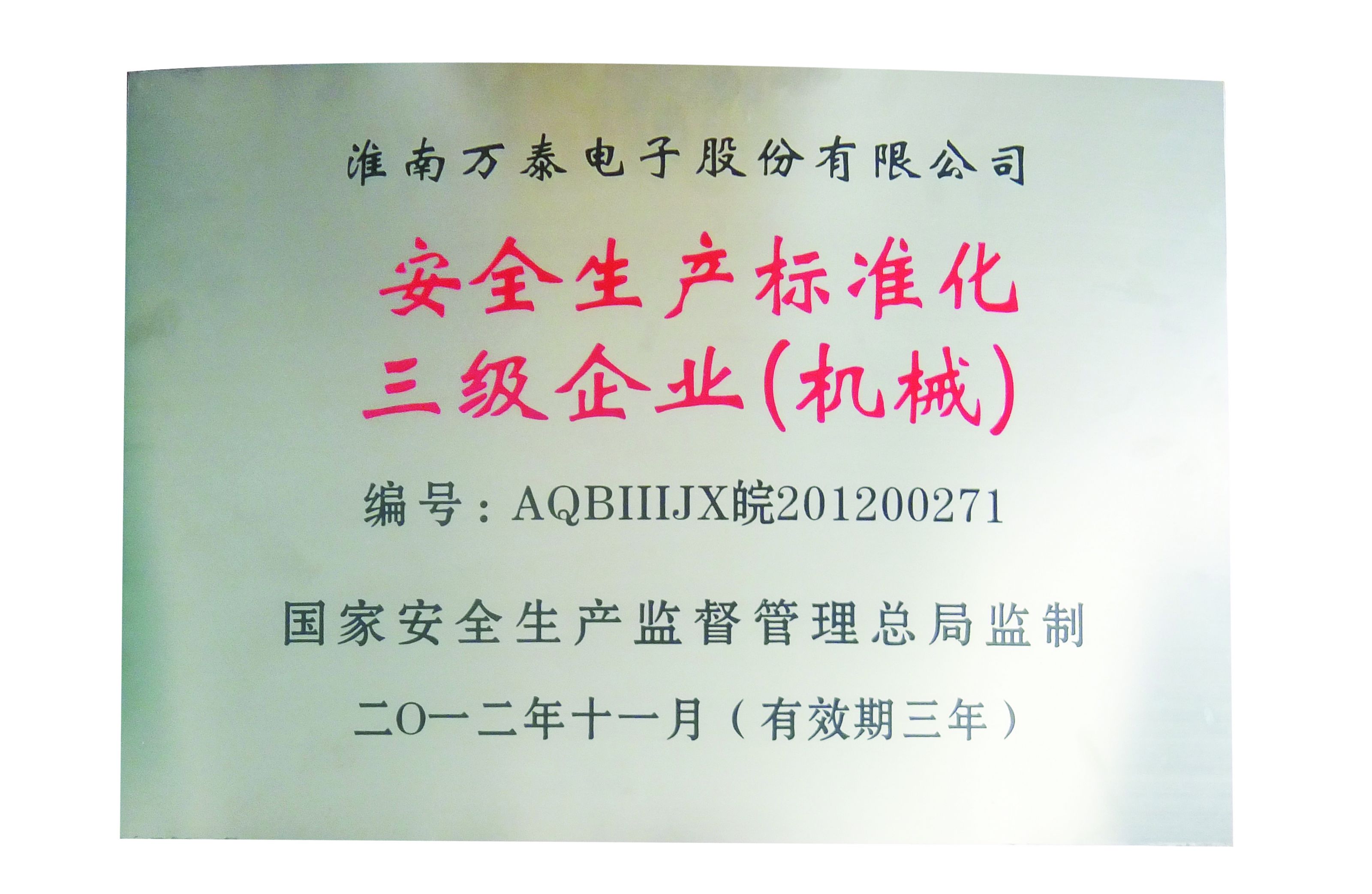 安全生產(chǎn)標(biāo)準(zhǔn)化3級企業(yè)