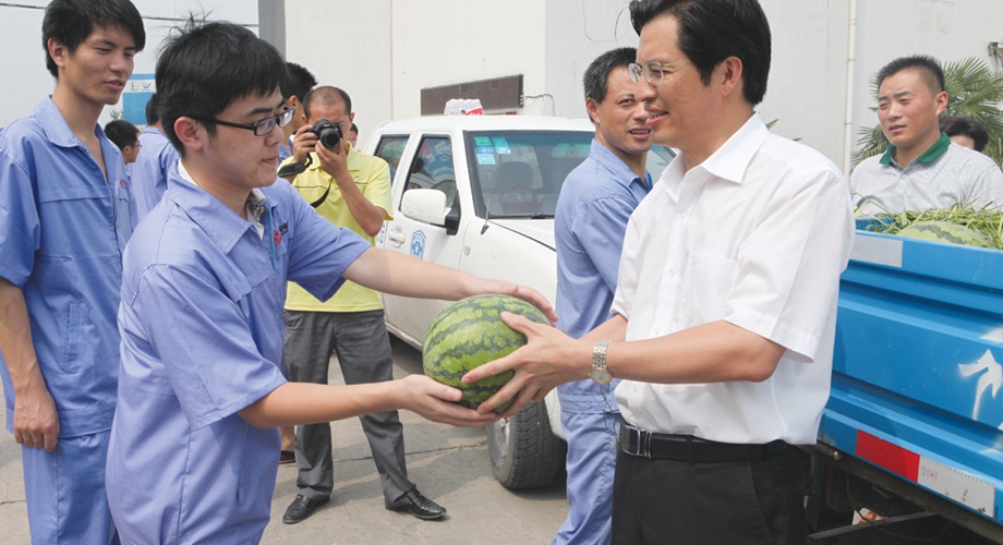 劉書(shū)記講話指出,感謝萬(wàn)泰電子對(duì)推動(dòng)潘集區(qū)經(jīng)濟(jì)的發(fā)展所做出的突出貢獻(xiàn),感謝廣大萬(wàn)泰員工對(duì)企業(yè)的發(fā)展所付出的辛勤勞動(dòng)。講話在員工熱烈的掌聲中結(jié)束。隨后廣大員工和隨行人員一起開(kāi)始搬運(yùn)西瓜和礦泉水,每個(gè)員工臉上都洋溢著幸福的笑容。