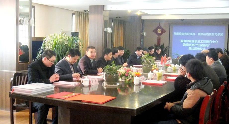 2014年3月8日上午,安徽大學(xué)和淮南萬泰電子股份有限公司共同成立的“教育部電能質(zhì)量工程研究中心 -----淮南萬泰產(chǎn)業(yè)化基地”在萬泰電子工業(yè)園簽約儀式圓滿結(jié)束。